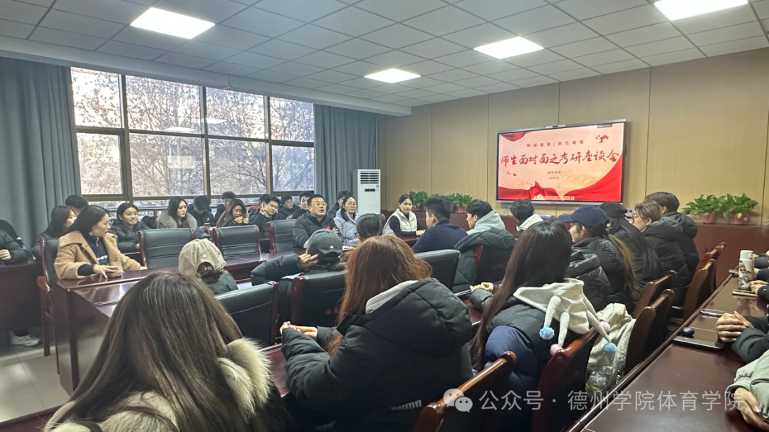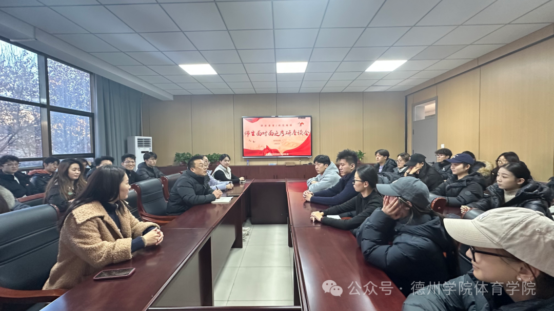 12月25日,体育学院开展了师生面对面考研座谈会,院长李春光、体育舞蹈系主任蒋慧、教师王红、辅导员薛梦莹与2023级体育舞蹈专业学生齐聚一堂,为学子考研备考答疑解惑、加油鼓劲。