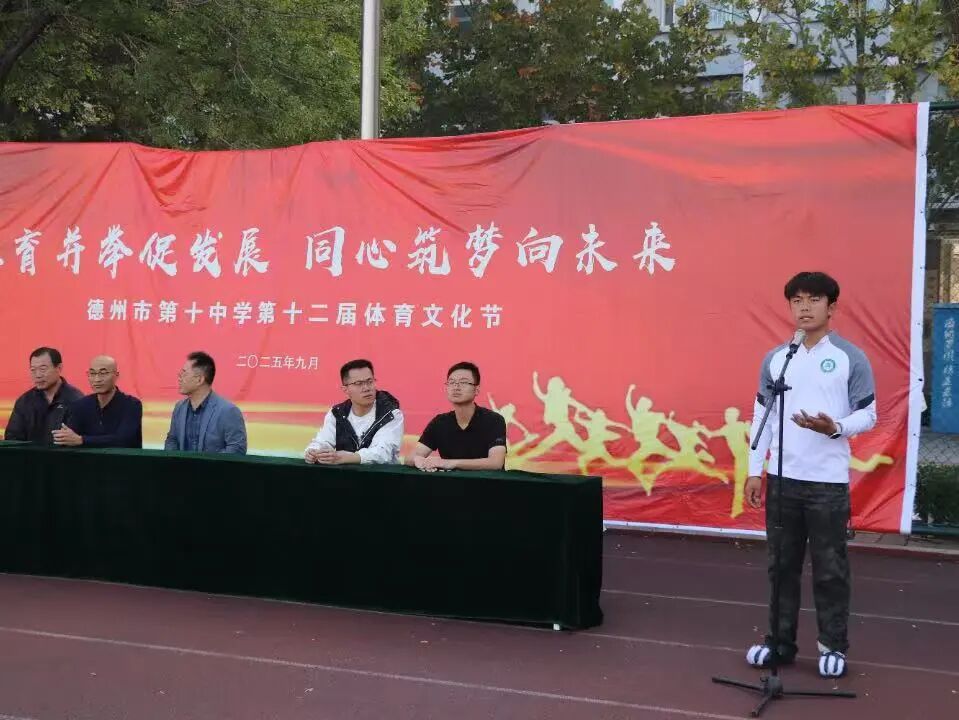 运动会开幕式上,德州学院体育学院学生王志豪作为裁判员代表庄严宣誓,承诺坚守“公平、公正、公开”原则执裁,展现了体育学子对规则的敬畏与专业担当,为赛事规范开展筑牢根基。