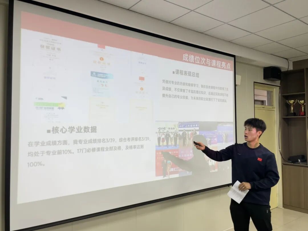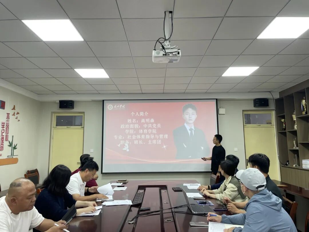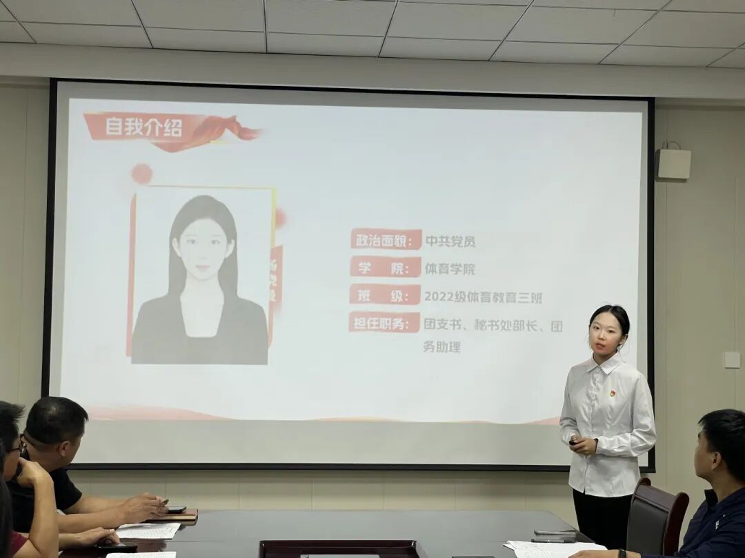 参与答辩的学生依次进行PPT汇报与现场陈述。思想政治方面,多名同学依托“青马工程”培养、学生代表大会履职等载体,展现出坚定的政治立场与强烈的责任意识;学业发展上,候选学生专业成绩与综合考评排名均跻身年级前10%,必修课程全部达标,部分学生在国家级、省级体育赛事中斩获佳绩,体现出对专业知识的系统掌握与实践技能的扎实锤炼;实践担当板块,学生们围绕学生会任职、志愿服务、社会实践等经历展开分享,将体育专业优势与社会需求深度结合,在奉献中实现个人价值升华。