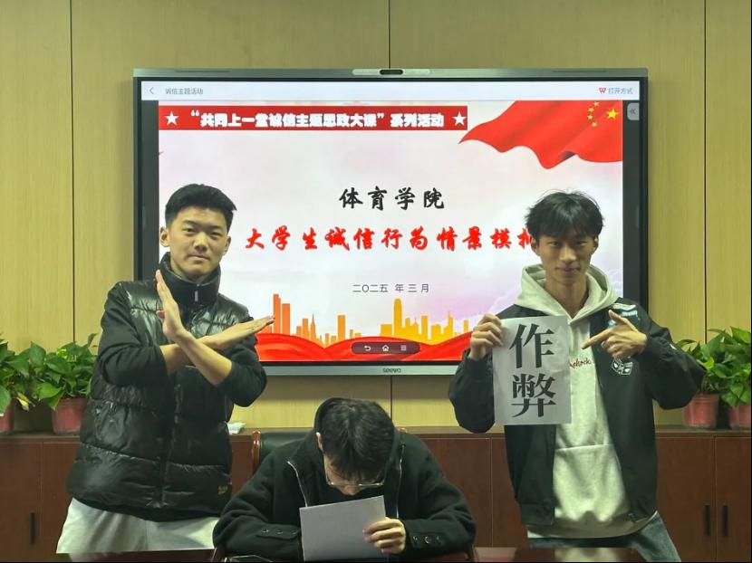 为进一步推动诚信教育,增强学生的诚信意识,体育学院于3月下旬精心组织了“共同上一堂诚信主题思政大课”主题班会及一系列丰富多彩的诚信教育主题活动,教育内容涵盖主题班会、大学生诚信行为情景模拟和诚信主题书法展等,在校园内营造了浓厚的诚信氛围。