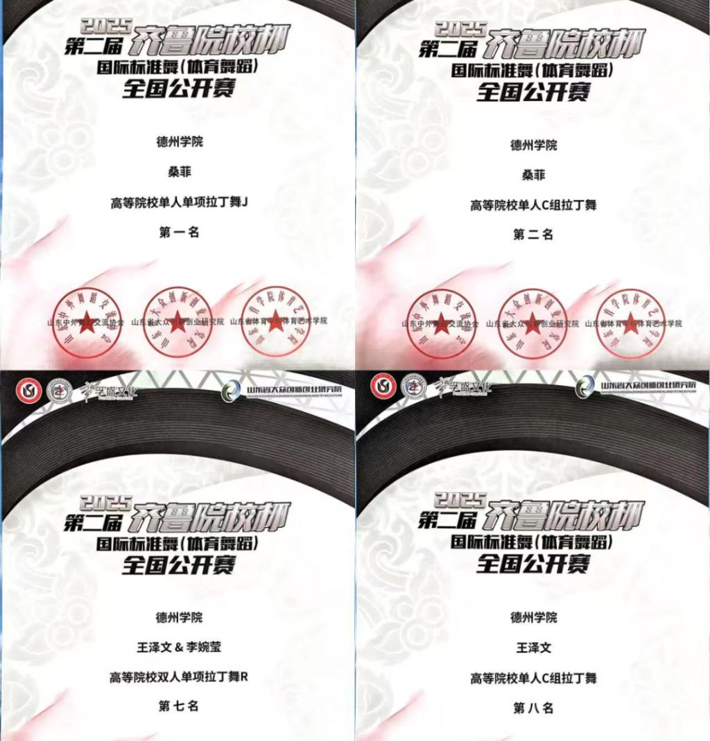 2025年11月1日,第二届“齐鲁院校杯”国标舞全国公开赛落幕。德州学院体育学院学子在王红老师带领下,从北体、上体等高校中突围,交出亮眼答卷!