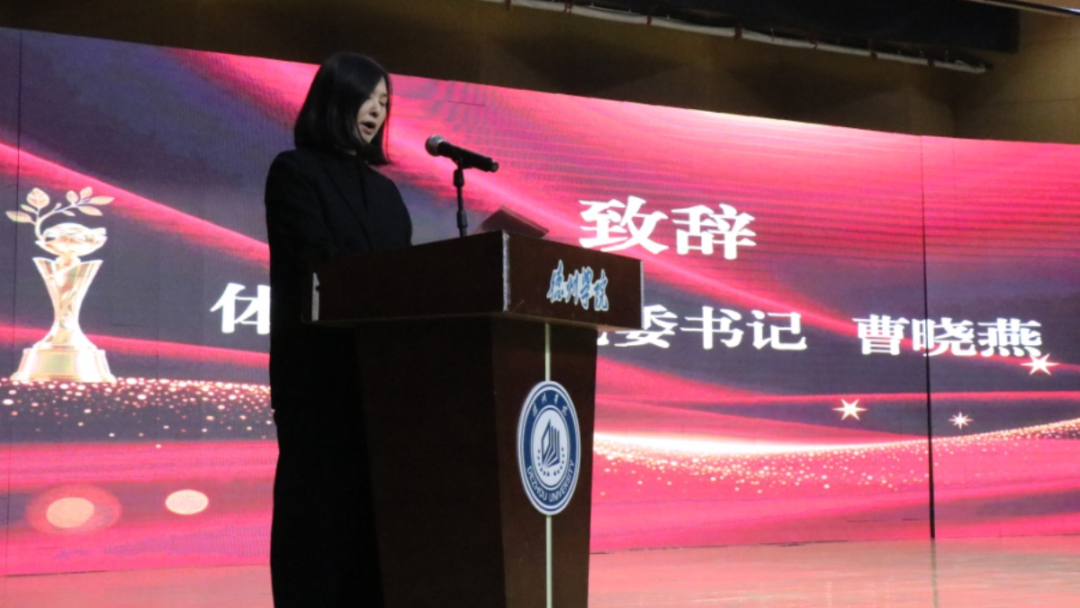 大会在庄严的国歌声中拉开帷幕,学院党委书记曹晓燕发表致辞。她立足体育强国建设背景,全面回顾学院过去一年在党建引领、教学改革、科研创新、人才培养等领域的丰硕成果,深入解读各类先进典型的精神内核,并以“铸魂育人守初心、强能笃行担使命、凝心聚力促发展”为指引,寄语全院师生锚定“十五五”发展蓝图,在体教融合赛道上持续深耕。