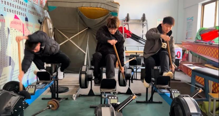 在花式早操的龙舟环节,模拟龙舟竞渡场景。随着节奏鼓点,同学们整齐划一地做出挥桨动作,仿佛在碧波上破浪前行。这不仅考验肢体协调性,更像是一场团队默契大考验,传承着团结奋进的精神,让大家在趣味中感受团队力量。
