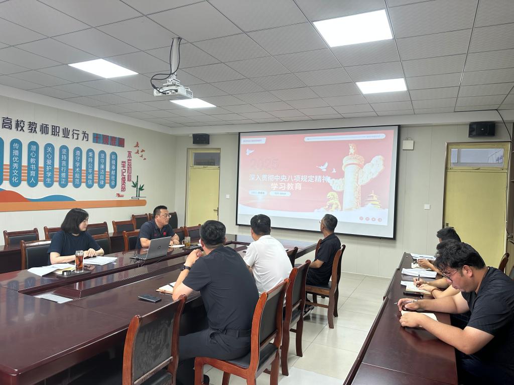 李春光院长从中央八项规定的出台背景出发,系统阐述了其精神内涵和实践要求,并结合自身学习体会与工作实际,为与会人员上了一堂深刻的作风建设课。他强调,中央八项规定是新时代制定的第一部重要党内法规,是党中央立下的铁规矩。贯彻中央八项规定精神,必须坚持以习近平总书记关于加强党的作风建设的重要论述为指导,坚守人民立场,聚焦突出问题,以严明纪律整饬作风,发扬钉钉子精神狠抓落实。他勉励党员教师以身作则,发挥先锋模范作用,将规定精神内化于心、外化于行,切实践行共产党人的初心使命。