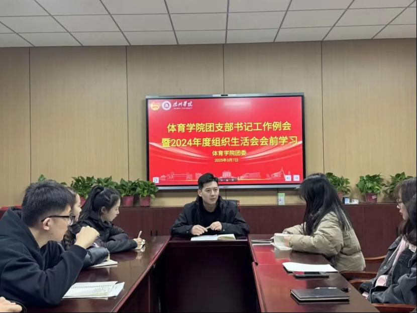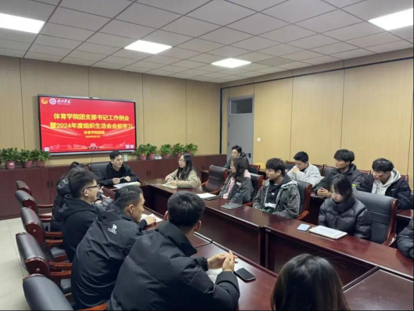 为进一步加强团支部建设,提升团支部书记的工作能力和综合素质,同时为 2024 年度组织生活会的顺利开展筑牢思想根基,3月7日,体育学院召开团支部书记工作例会暨 2024 年度组织生活会会前学习,学院团委书记、各年级团支部书记及相关团学干部参加此次会议。