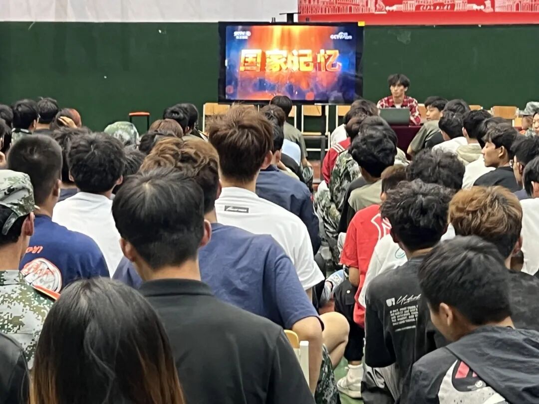 宣讲结束后,大会通过影像教育深化感悟,组织观看《铭记九一八 中流砥柱》等纪录片,让学生深刻认识党在抗日战争中的中流砥柱作用,坚定“听党话、跟党走”信念。最后,全体人员高唱《没有共产党就没有新中国》,在激昂歌声中彰显对党的忠诚与热爱。