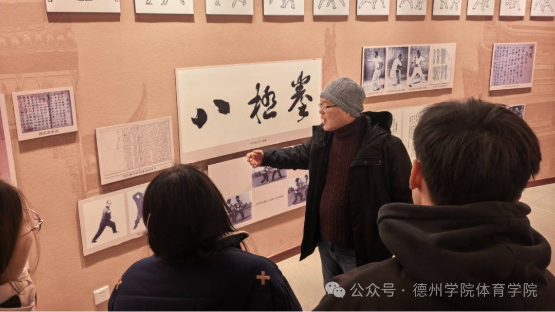 在王志财主席的专业的引领与讲解下,团队参观了位于景区内的八极拳博物馆。馆内陈列了大量珍贵的历史器械、典籍、影像与人物史料,清晰勾勒出八极拳自明末清初发源至今350余年的发展脉络。透过珍贵展品,师生们深入了解到八极拳的技术体系、传承谱系与文化理念,深刻感受到这一国家级非物质文化遗产所蕴含的历史厚重感与民族精神气质。