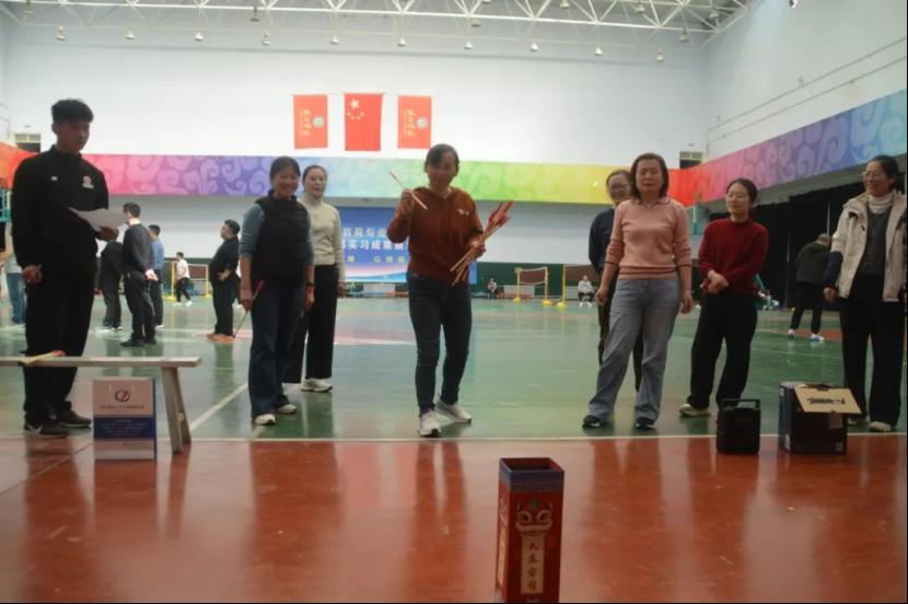 当日下午,教职工们早早来到体育馆,热情高涨地准备投入到活动中。本次活动项目丰富多样,设有拔河、接力传球、定点投篮、投壶以及跳绳等。拔河比赛中,各参赛队伍喊着整齐的口号,齐心协力、奋力拼搏,展现出强大的团队凝聚力;接力传球考验着团队成员之间的默契配合,大家争分夺秒,传递着团结与信任;定点投篮处,教职工们身姿矫健,精准投篮,赢得阵阵喝彩;投壶区域充满了欢声笑语,大家全神贯注,体验传统游戏的乐趣;跳绳比赛则让现场气氛达到高潮,参赛选手们身轻如燕,快速跳跃,展现出良好的身体素质。