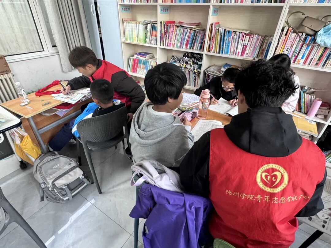 10月18日上午,为精准对接德州市救助站站内儿童的学习需求,切实解决他们在学科学 习中的痛点难点,同时传递社会关怀、助力孩子们全面成长,德州学院体育学院特意策划并组 织了此次爱心支教活动。这既是学院践行志愿服务精神、履行社会责任的具体举措,也是为搭 建高校与社会公益场所联动的帮扶平台,让学子们用专业知识回馈社会,彰显当代大学生责任 与担当的实践行动。