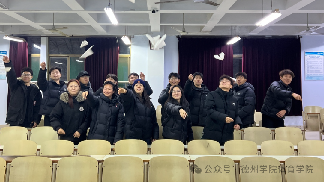 活动伊始,“冬日能量唤醒”环节迅速点燃现场氛围。随着数字指令响起,同学们纷纷做出高抬腿、直膝跳、比耶等对应动作,整齐划一的姿态与轻快的节奏交织,在轻松的热身互动中打破陌生感,充分展现出学子的蓬勃朝气与青春活力。随后的“纸飞机回应”环节温馨治愈,大家将心中的期许、烦恼或感悟认真写于纸上,细心折成纸飞机轻轻放飞。纷飞的纸飞机在空中划出优美弧线,既让负面情绪随清风消散,也让彼此的心意相互传递,有效拉近了同学间的心灵距离。