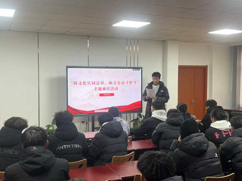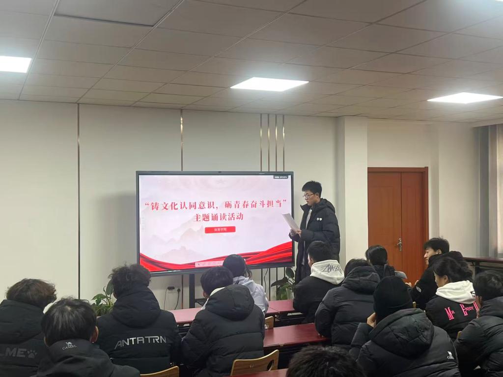 为深入推进校园文化建设,增强学生的文化认同感与历史使命感,引导青年学子在诵读中坚定理想信念、厚植家国情怀,2025年12月21日,体育学院举办了“铸文化认同意识,砺青春奋斗担当”主题诵读活动。