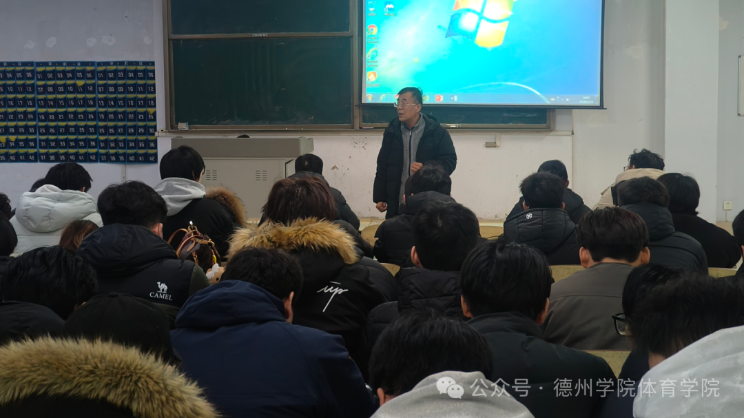 为总结2023级学生实习成效,进一步明确学业发展方向,激发学生考研热情,1月16日,我院在体育楼举办2023级实习任务总结暨考研动员大会。体育学院党委副书记薛文辉、副院长颜世亮、体育教育系主任李广文、教师李献震、辅导员薛梦莹参与本次会议,2023级全体学生参加。