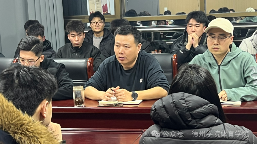 会议伊始,山秀宁、刘长龙、薛梦莹依次发言,结合自身工作经验,围绕学生管理、活动组织、社团建设等方面,分享了新学期工作思路与规划,明确了工作重点与推进方向。随后,薛文辉发表总结讲话。他对过去一年学生干部和社团的工作成效给予充分肯定,并结合新学期学院发展目标,提出了明确要求。他强调,全体学生干部要凝心聚力,强化责任担当,充分发挥学生干部的桥梁纽带作用,要笃行实干,创新工作方法,努力打造具有体育学院特色的校园活动品牌,同时要严守纪律,锤炼优良作风,以高标准、严要求做好各项服务工作。