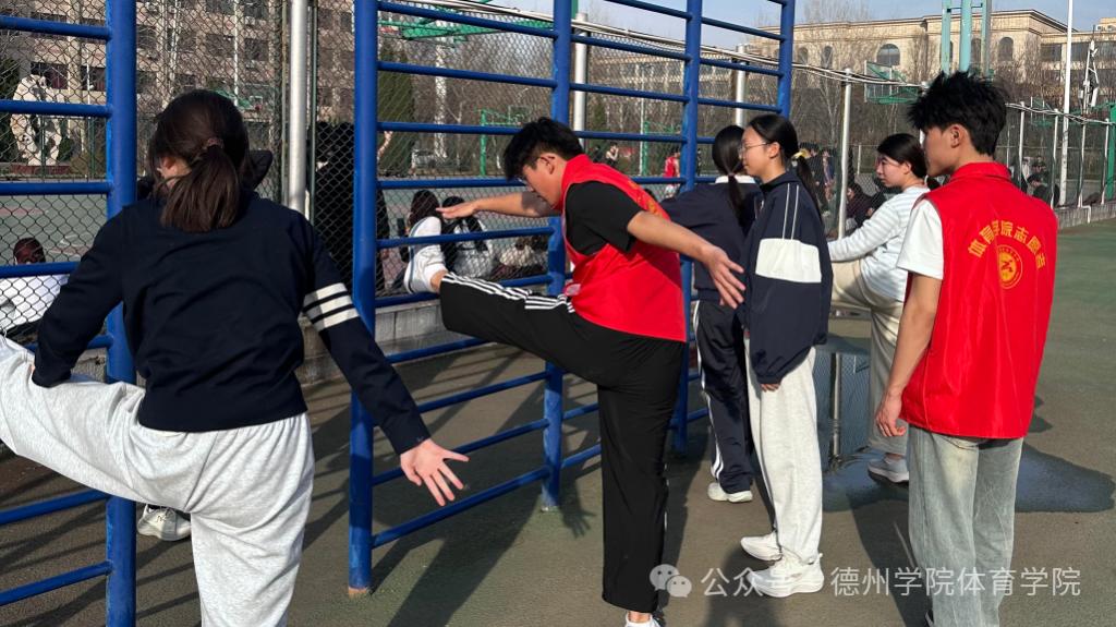 在训练过程中,志愿者规范示范动作要领,并细致讲解技巧和防护知识。针对每位学生的薄弱环节,志愿者逐一纠正动作,实施个性化指导,帮助学生提升训练效率。